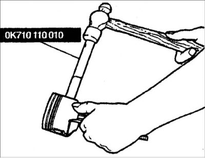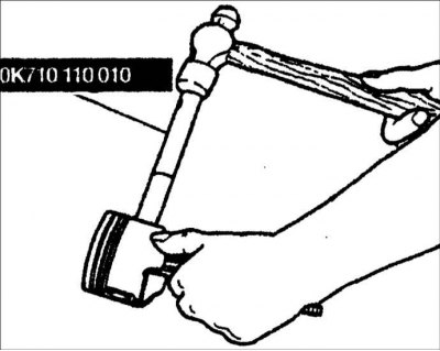 30. Специальным приспособлением ОК710 110 010 и молотком выбейте поршневой палец.