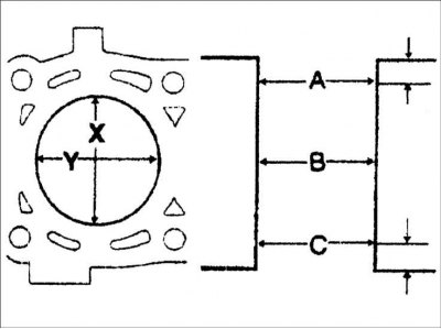 6. Если разность между измерениями X и Y превысит максимально допустимую овальность, расточите цилиндр до следующего увеличенного размера.