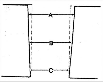 5. Для определения конусности цилиндра измерьте диаметр цилиндра в верхней, средней и нижней частях.