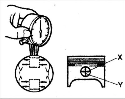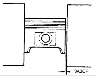 4. Если зазор превышает предельно допустимое значение, замените поршни на больший ремонтный размер и расточите цилиндры.