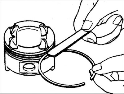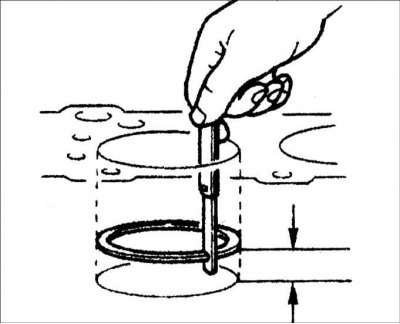 1. Вставьте новое поршневое кольцо в канавку поршня и щупом измерьте зазор между поршневым кольцом и стенкой канавки.