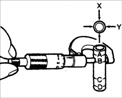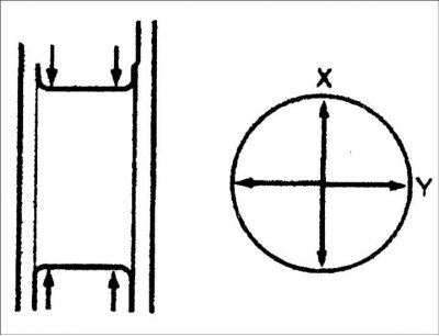 4. Измерьте диаметры цилиндров в диаметрально противоположных направлениях, в трех плоскостях по высоте цилиндров.
