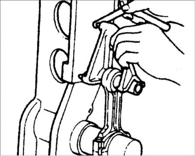 17. Отверните гайки крепления крышки шатуна и легкими ударами пластикового молотка сбейте крышку.
