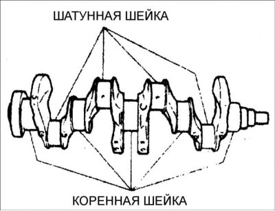 1 – крышка шатуна; 2 – вкладыш шатунного подшипника; 3 – поршень с шатуном; 4 – поршневые кольца; 5 – крышка коренного подшипника; 6 – коленчатый вал; 7 – игольчатый подшипник первичного вала коробки передач; 8 – вкладыш коренного подшипника; 9 – блок цилиндров.