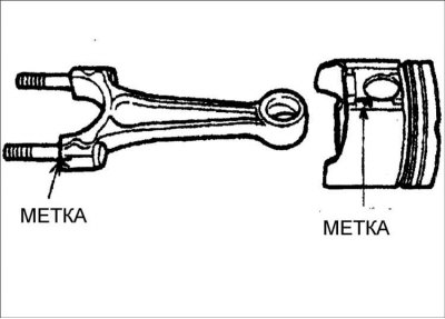 Внимание! Устанавливая крышку шатуна, совместите установочные метки на крышке и шатуне.