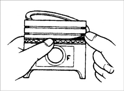 25. Специальными пассатижами разожмите поршневые кольца и снимите их с поршня.