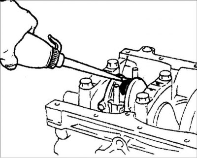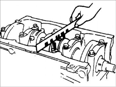 23. Если зазор превышает предельно допустимое значение, перешлифуйте шейки коленчатого вала и используйте ремонтные вкладыши увеличенного размера.