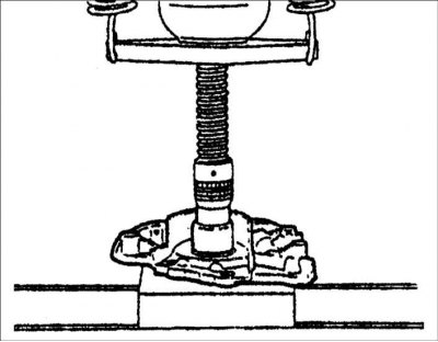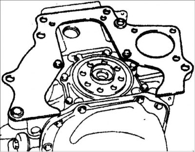 Постепенно, по диагонали, ослабьте болты крепления кожуха нажимного диска сцепления до тех пор, пока не прекратится действие диафрагменной пружины, затем выверните болты вручную.