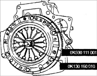 Снимите кожух нажимного диска сцепления и диск сцепления.