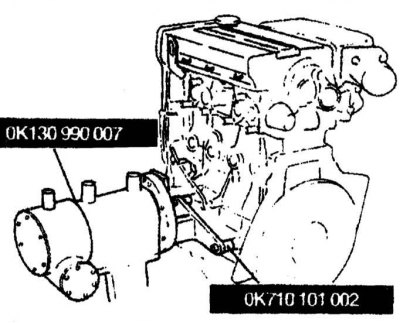 6. Установка на двигатель вспомогательных элементов производится в последовательности, обратной снятию.