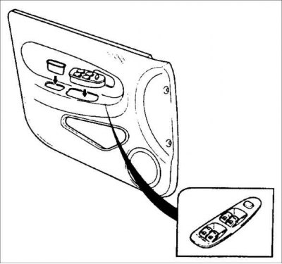 1. Подсоедините к переключателю стеклоподъемников электрический разъем, и вдавите переключатель в подлокотник обивки двери, до четкой его фиксации.