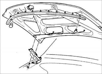 2. Поддержите капот так, чтобы он не упал после выворачивания болтов крепления шарниров.