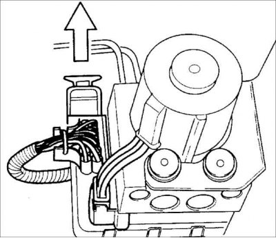 3. Снимите крышку разъема с блока. Потянув, освободите фиксатор и отсоедините разъем от блока гидравлического управления.