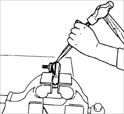 6. Съемником OK130 283 021 выдавите цапфу шарового шарнира наконечника рулевой тяги с поворотного кулака.