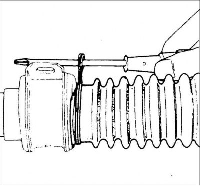 12. Разрежьте провод и ослабьте хомут крепления защитного чехла рулевой передачи.