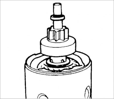 4. Установите обгонную муфту и фиксатор стопорного кольца на вал ротора.