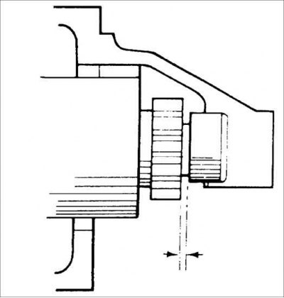 15. Измерьте зазор между фиксатором стопорного кольца и фланцем передней крышки.