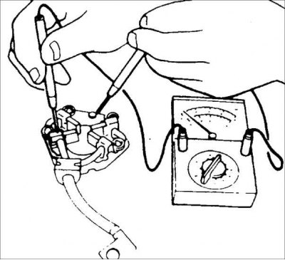 1. Омметром проверьте проводимость между каждой изолированной щеткой и пластиной. При наличии проводимости, замените щеткодержатель.
