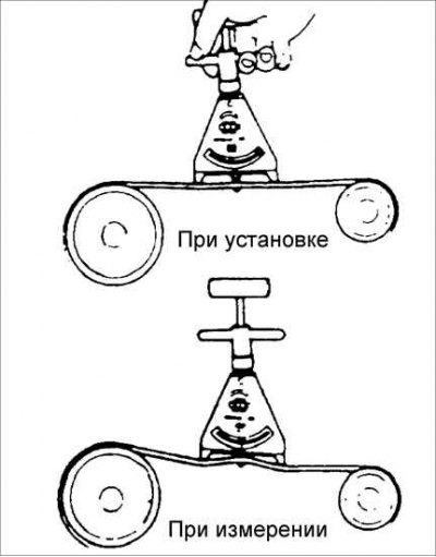 2. Специальным прибором измерьте натяжение ремня привода генератора.