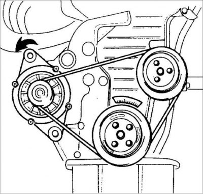 Натяжение ремня привода генератора и кондиционера: