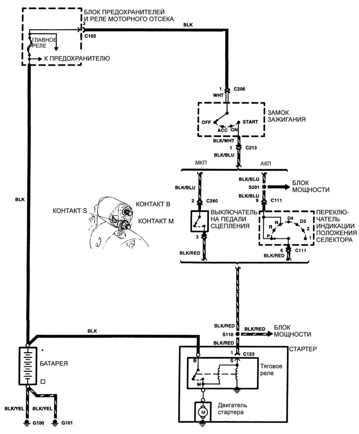 Электросхема системы пуска двигателя