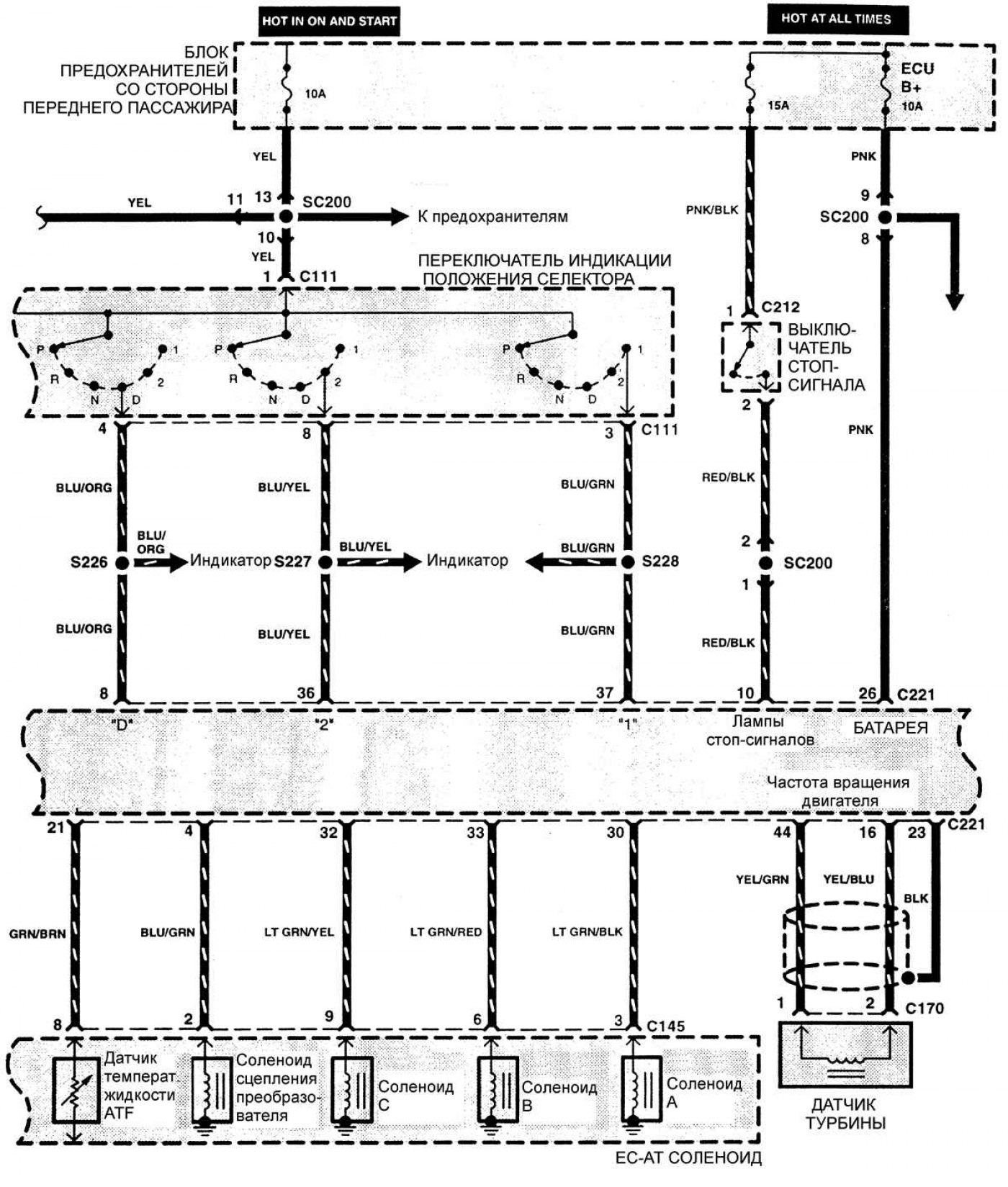 Электросхема управления автоматической коробкой передач