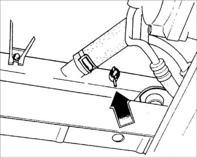 11. Ослабьте хомуты и отсоедините шланги идущие к отопителю.