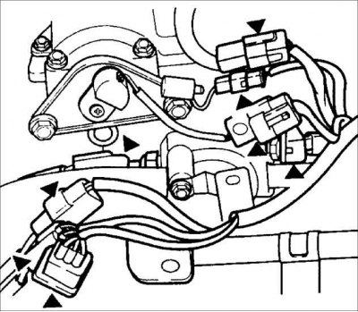 13. Отсоедините электрические разъемы от топливных форсунок.