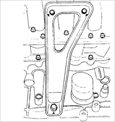 Внимание! Исключите попадание остатков прокладки в каналы для смазки и цилиндры двигателя.