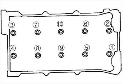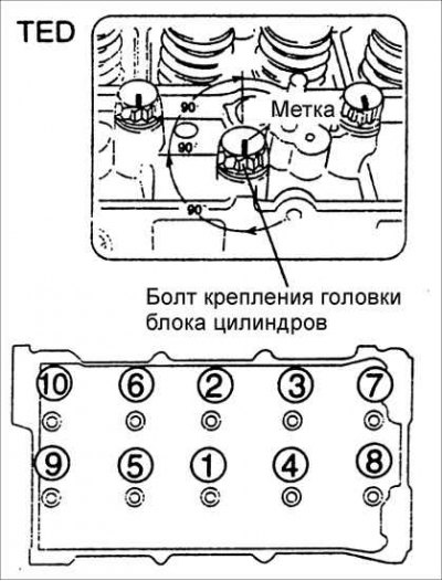 3. В определенной последовательности затяните болты крепления головки блока цилиндров в несколько этапов: