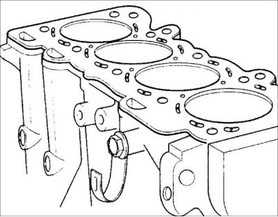 1. Установите новую прокладку на блок цилиндров двигателя. Установите головку блока цилиндров.