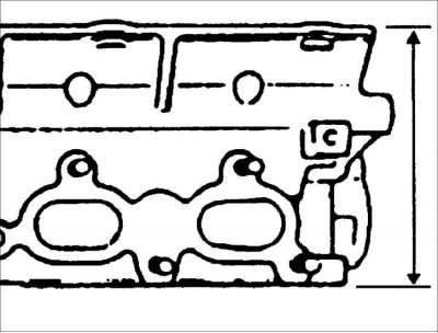 6. Если высота головки блока цилиндров отличается от номинальных значений, замените головку блока цилиндров.