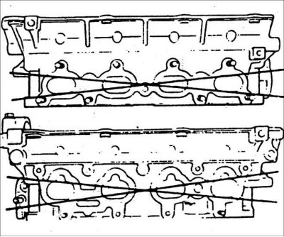 Внимание! Если необходимо произвести механическую обработку головки блока цилиндров, предварительно снимите впускной и выпускной коллекторы и проверьте плоскостность сопрягаемых поверхностей коллекторов.