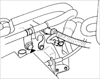 14. Отсоедините от головки блока цилиндров остальные электрические разъемы, снимите кронштейн и переустановите проушину для поднятия двигателя.