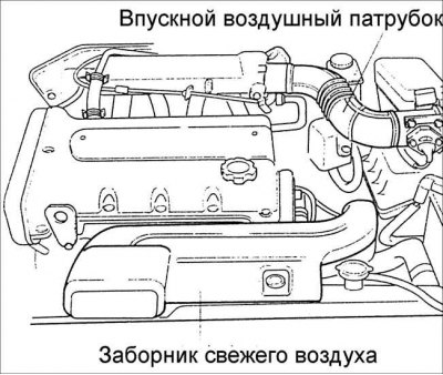 17. Установите на место впускной воздушный патрубок и заборник свежего воздуха.