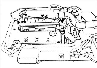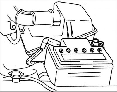 5. Снимите шланг положительной вентиляции картера и шланг вентиляции.