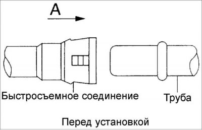 1. Надвиньте фланец быстросъемного соединения на трубу до четкой его фиксации (щелчка).