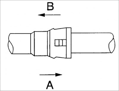 2. После соединения шлангов, потяните в разные стороны (А и В) две части быстросъемного разъема и убедитесь, что фиксация разъема выполнена надежно, при этом не нажмите держатели соединения.