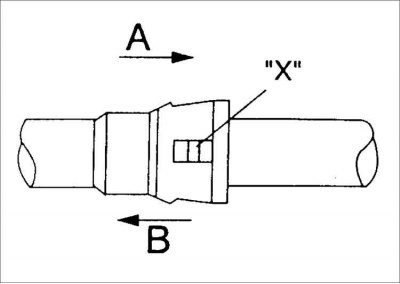 2. Нажмите на фланец быстросъемного соединения в направлении А.