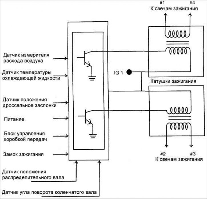 В обычной системе зажигания, катушка зажигания вырабатывает ток высокого напряжения, и распределитель зажигания передает этот ток, в требуемое время, к соответствующей свече зажигания.