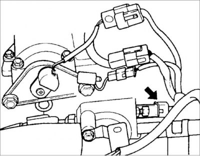 1. Отсоедините разъем от датчика температуры охлаждающей жидкости.
