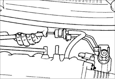 2. Отсоедините вакуумный шланг от клапана улавливания паров топлива (EVAR) и продуйте его со стороны шланга.