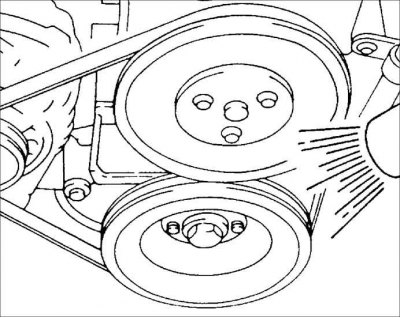 5. По совмещению меток на шкиве коленчатого вала с указателем, проверьте угол опережения зажигания.