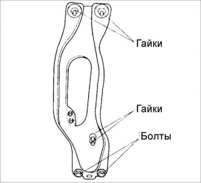 5. Установите пластину защиты двигателя и, свободно вверните болты и гайки.