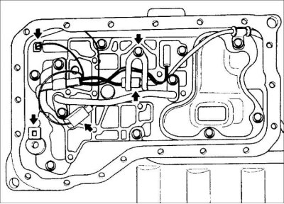 Внимание! Перед снятием блока клапанов очистите наружную поверхность коробки передач очистителем или растворителем.