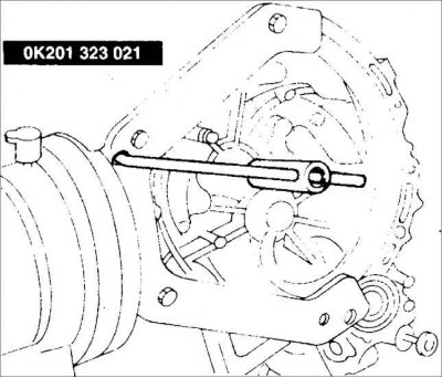 2. Приспособлением OK201 323 021 заблокируйте первичный вал коробки передач.