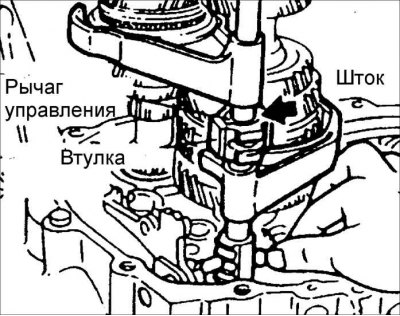 Установка рычага штока и штока 5-ой/ задней передач