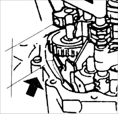 1. Установите вилку и шток переключения передач к шестерне 2-ой передачи так, как показано на рисунке.