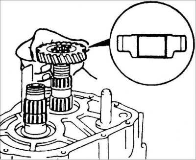 Установите ведомую шестерню 5-ой передачи так, как показано на рисунке.