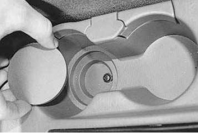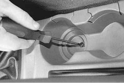 3. Извлеките заглушку винта крепления облицовки в подстаканнике...